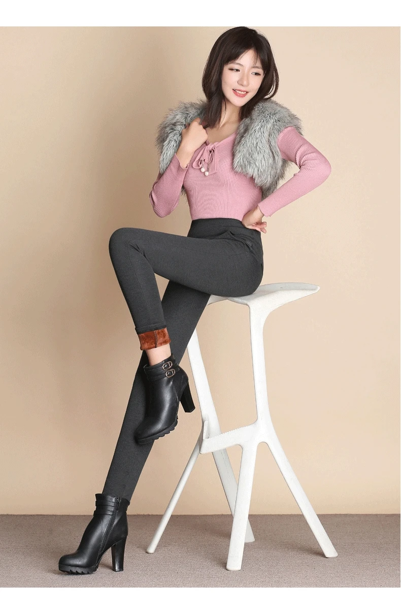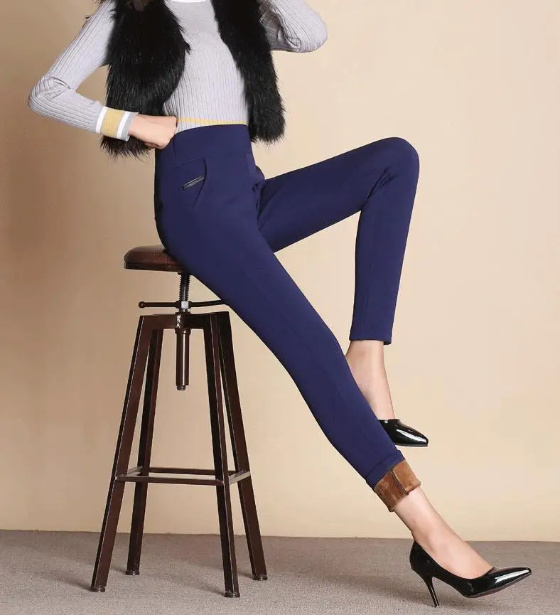 Супер теплые женские зимние узкие брюки из плотного флиса женские черные синие серые с высокой талией стрейч брюки Pantalon Mujer 2018