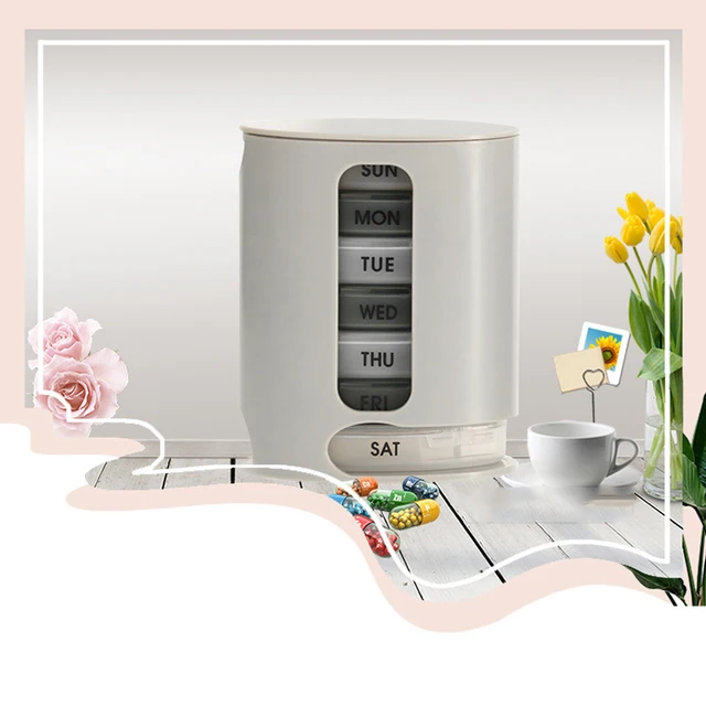 1. держит семь переносной поднос, один на каждый день недели, каждый с четырьмя помеченными отсеками для координации таблеток и витаминов к времени дня. Никогда не пропустите дозировку-каждая таблетка имеет свое место на всю неделю.