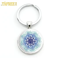 TAFREE Стекло Gem брелоки Йога Мандала синий рисунок ключница ручной работы ЛЕТО jewelry брелок-бижутерия брелок автомобиль M35-51USD 0.82/piece