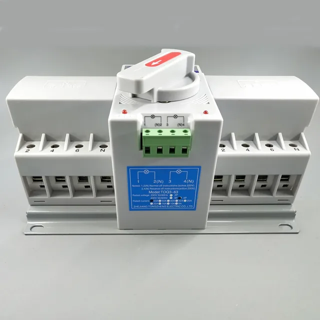 TOQ3D терминал тип автоматического устройства. Она подходит для 3 фазы 4 провода (или 1 Фаза 1 провод) dual power grid с AC 50/60 Гц, номинальное напряжение 400 В/230 В и номинальный ток до 63A. Когда одна мощность идет не так (только проверить нормальную фазу напряжения и резервную фазу напряжения, только проверить напряжение потери или фазу потери), он автоматически подключит один или несколько цепей нагрузки от одной мощности к другой мощности, чтобы обеспечить нормальное питание цепей нагрузки.