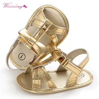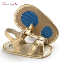 Летние для маленьких девочек Bebe вечерние детская обувь детская Лидер продаж дня рождения с бантом золото PU нескользящим детские мокасины