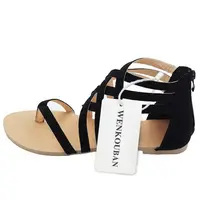 Плюс размер 35-41 женские сандалии-гладиаторы женская обувь на плоской подошве обувь Эластичная лента Летние повседневные сандалии туфли черного и красного цвета Chaussure FemmeUSD 9.58-11.99/piece