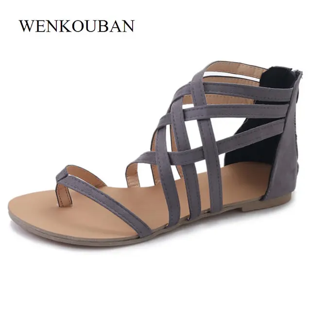 Для женщин обувь на высоком каблуке летние босоножки дамские Обувь на молнии с круглым носком квадратный каблук сандалии Повседневное zapatos mujer Большие размеры 35–43USD 15.66-18.61/pairСандалии-гладиаторы, женские Вьетнамки, летние сандалии на плоской подошве, женская обувь, Romen Sandalias повседневная обувь Femme, большие размеры 35-43