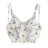 Майка Цветочный принт повседневное Шифоновое без рукавов укороченный топ Для женщин V воротник женские короткие топы с Костюмы бретели 18JUN13USD 2.07-4.13/pieceЖенская майка без рукавов с v-образным вырезом
