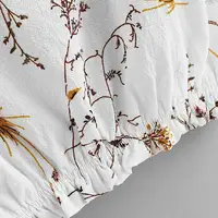 УКОРОЧЕННЫЙ ТОП Для женщин Сексуальная футболка с открытыми плечами Топы V шеи Цветочный Принт без рукавов Для женщин Укороченный женский топ 18JUL30