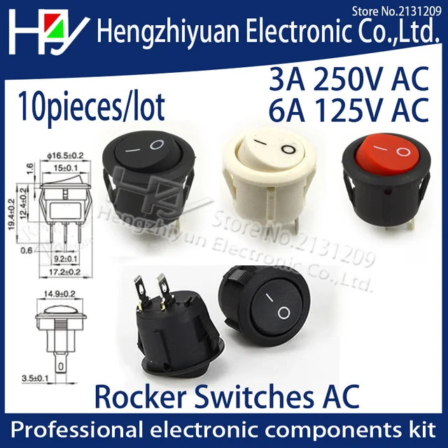 Hzy 10 мм шт./лот 15 мм 16 мм Диаметр маленькая круглая лодка кулисный переключатель черный мини круглый белый красный 2 Pin ВКЛ-ВЫКЛ кулисный переключатель 3A 250 В