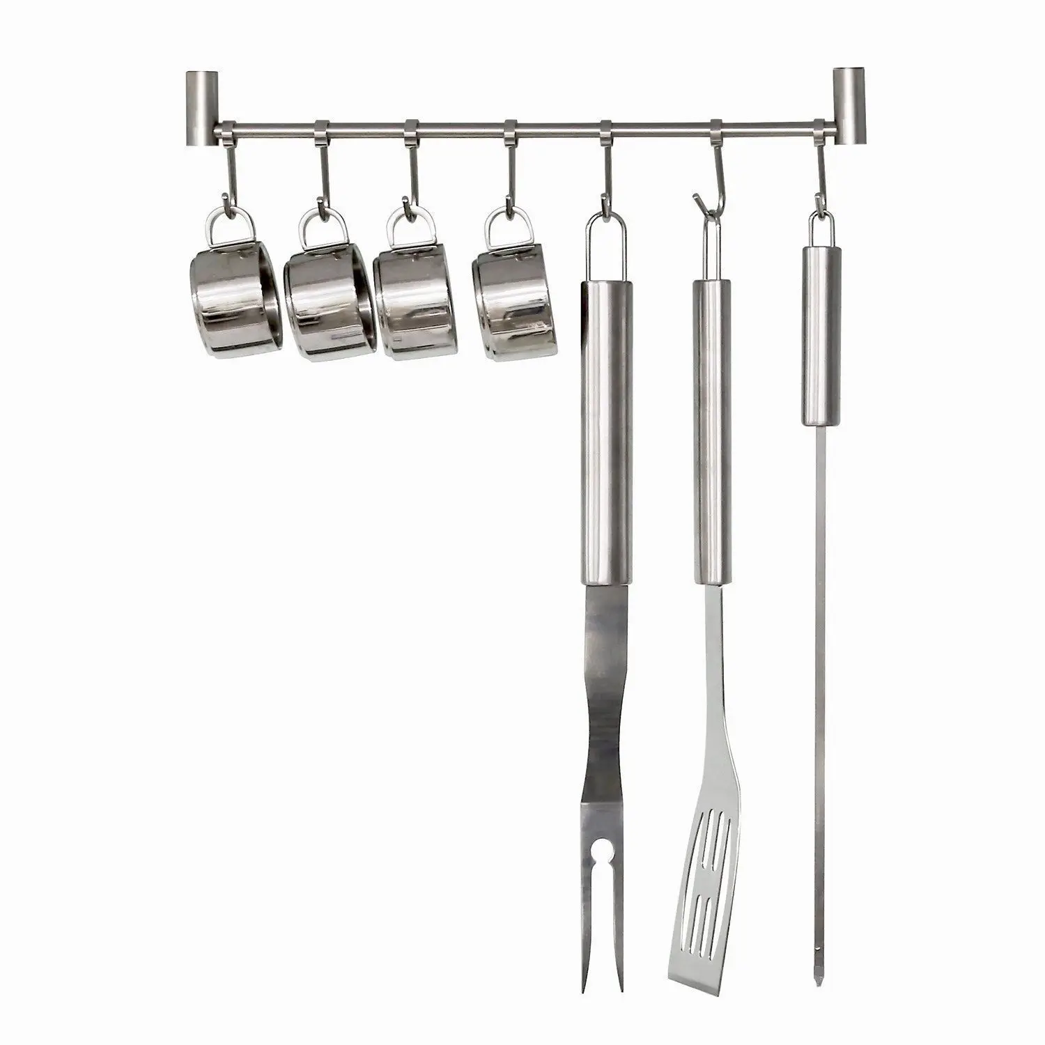 Эта нержавеющая сталь посуда подвесная стойка отделана в гладкий вид и предлагает удобный способ повесить чашки, набор посуды, полотенца, перчатки или все, что вы хотите повесить за дверью, в прихожей, или в любое другое место на вашей кухне или в ванной комнате, Эта стойка с крюком действительно пригодится.